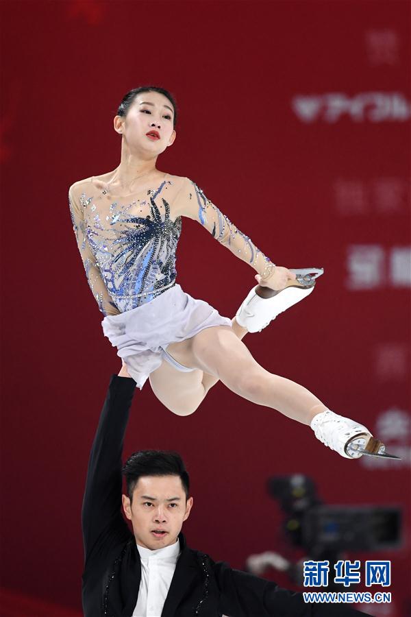 11月5日,中国双人滑组合彭程/金杨(下)在赛前训练中。 当日,参加2020年中国杯世界花样滑冰大奖赛的选手备战比赛。2020年中国杯世界花样滑冰大奖赛将于11月6日至8日在重庆举行。 新华社记者 鞠焕宗 摄