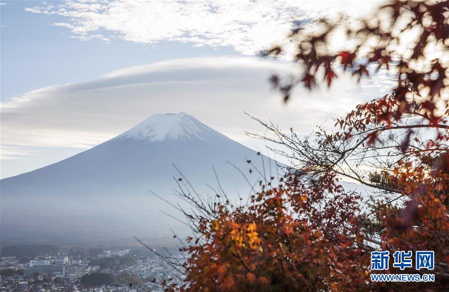 这是11月6日在日本山梨县拍摄的富士山。 深秋时分,日本富士山周边的植被呈现出多样的色彩,与富士山相映成趣,吸引游人前来观赏。 新华社记者杜潇逸摄