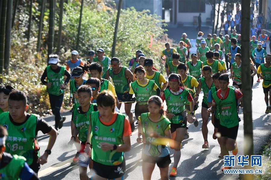 11月8日,参赛选手在安吉县山川乡灵溪山景区起跑。 当日,2020“云上草原杯”全国山地户外运动多项赛在浙江省安吉县山川乡展开第二日的角逐。比赛设专业组、俱乐部组以及大众组等组别,吸引了来自全国各地的700余名选手参赛。 新华社记者黄宗治摄