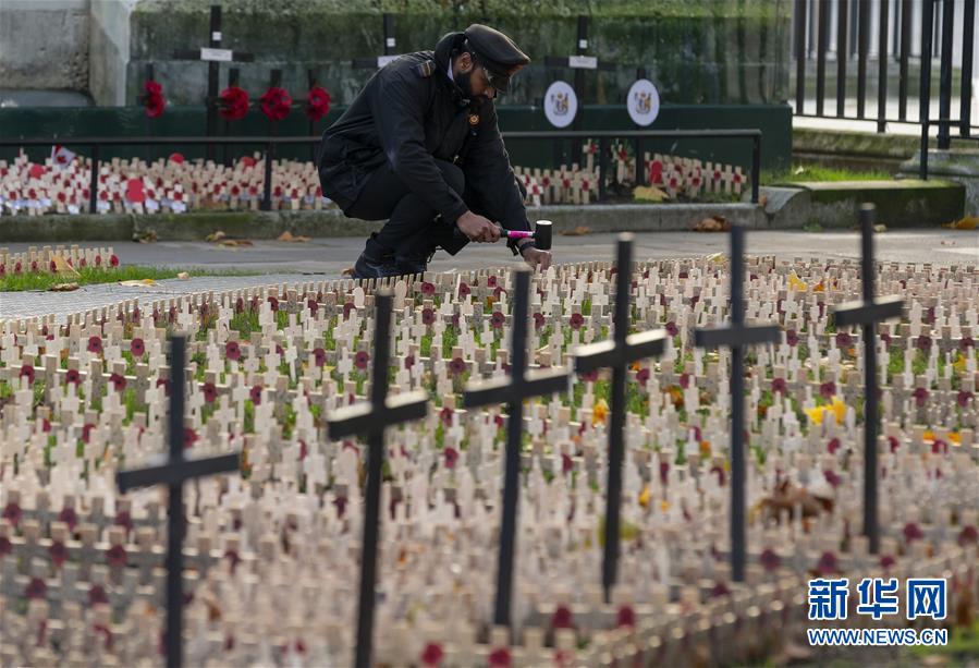 11月7日,人们在英国伦敦威斯敏斯特教堂外摆放的“罂粟花十字架”旁沉思。 英国伦敦威斯敏斯特教堂外的草坪摆放了众多“罂粟花十字架”,迎接即将到来的“阵亡将士纪念日”,纪念在第一次世界大战中阵亡的将士。11月11日是英联邦国家停战纪念日,也称“阵亡将士纪念日”。 新华社记者 韩岩 摄