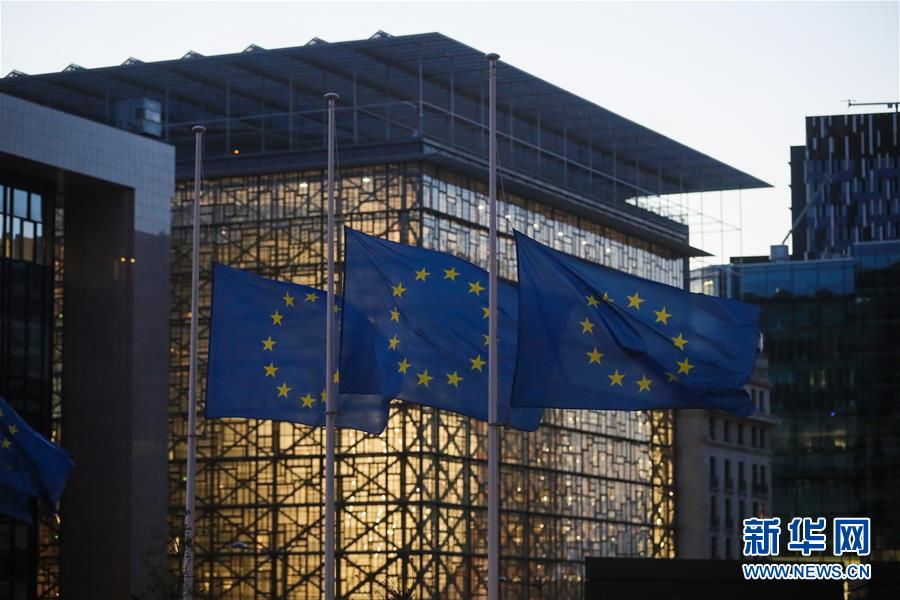11月3日,位于比利时首都布鲁塞尔的欧盟委员会总部降半旗,悼念近期法国和奥地利袭击事件中的遇难者。 新华社记者 郑焕松 摄