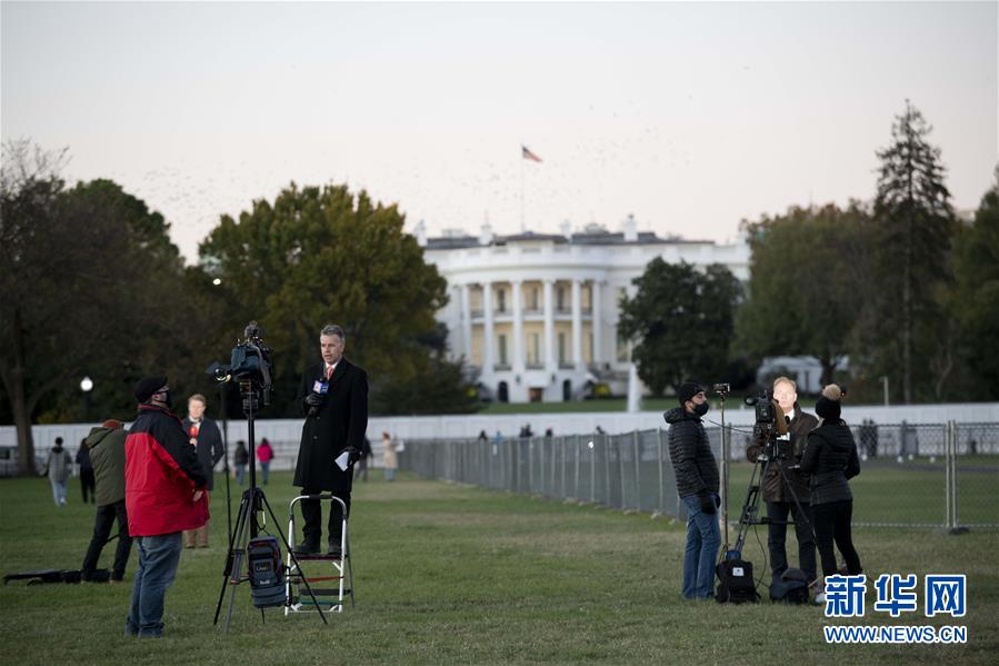 11月2日,媒体记者在美国华盛顿的白宫前报道大选。 11月3日,美国将迎来4年一度的总统大选,谋求连任的现任总统、共和党总统候选人特朗普和民主党总统候选人、前副总统拜登角逐白宫。 新华社记者 刘杰 摄