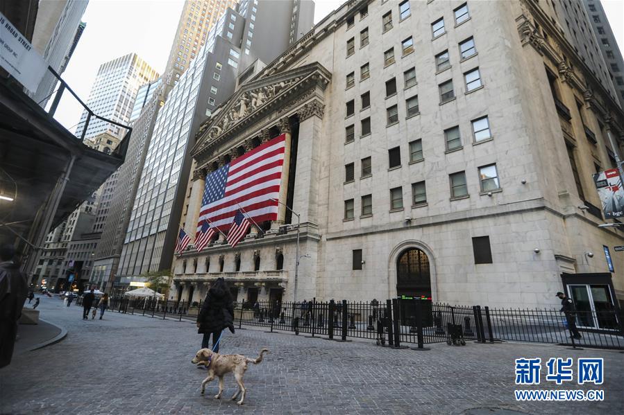11月4日,行人从美国纽约证券交易所旁走过。 纽约股市三大股指4日显著上涨。截至当天收盘,道琼斯工业平均指数上涨367.63点,收于27847.66点,涨幅为1.34%;标准普尔500种股票指数上涨74.28点,收于3443.44点,涨幅为2.20%;纳斯达克综合指数上涨430.21点,收于11590.78点,涨幅为3.85%。 新华社记者 王迎 摄