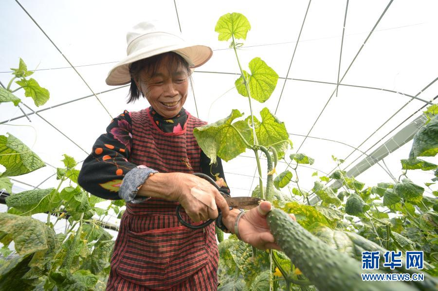 11月15日,村民在玉屏侗族自治县新店镇洞坪村蔬菜种植基地采摘黄瓜。