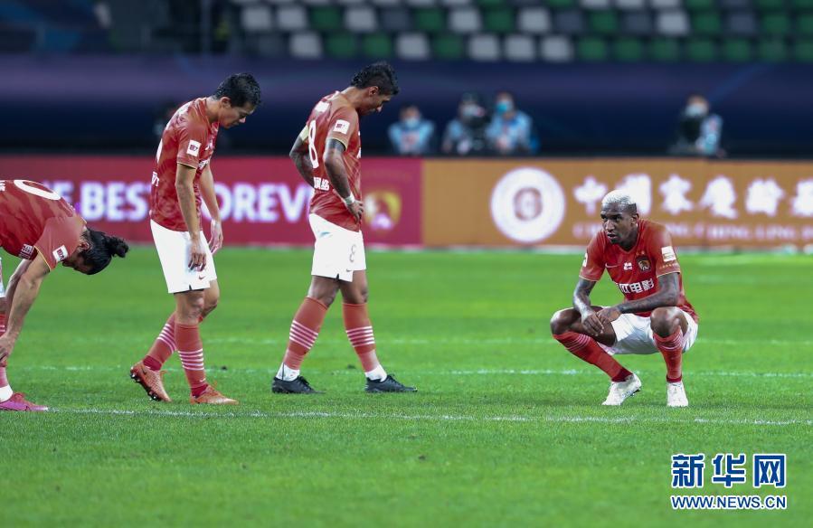 图为11月12日,广州恒大淘宝队球员塔里斯卡、保利尼奥、黄博文、洛国富(从右到左)在比赛结束后神情失落。