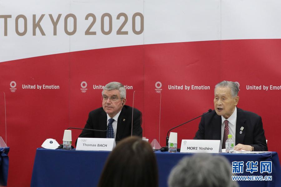 11月16日,国际奥委会主席巴赫(左)与东京奥组委主席森喜朗在发布会上。 当日,国际奥委会主席巴赫与东京奥组委主席森喜朗在日本东京出席联合新闻发布会。 新华社记者 杜潇逸 摄