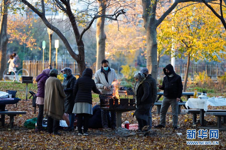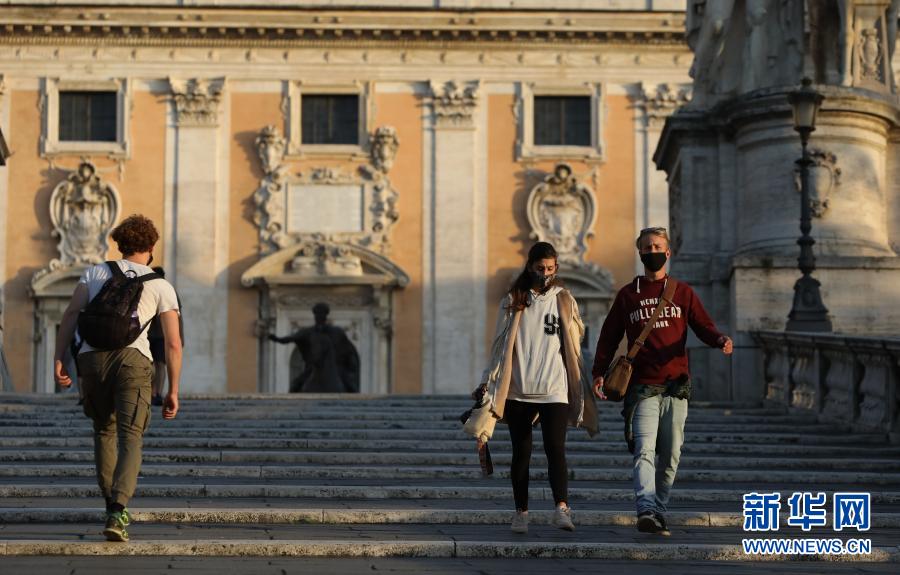 11月10日,在意大利首都罗马,人们戴着口罩走在罗马市政厅前。新华社记者程婷婷摄