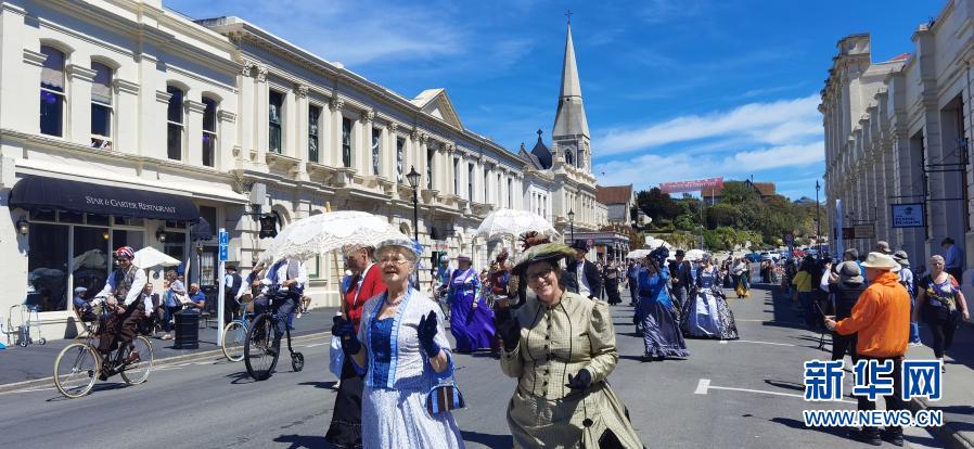 11月14日,在新西兰奥马鲁,人们身穿复古服装参加复古大巡游。新华社记者 卢怀谦 摄 当日,在新西兰奥马鲁举行的为期5天的维多利亚复古节进入全城复古大巡游。维多利亚复古节每年11月上旬举行,期间会举办传统舞蹈、全城复古巡游等一系列活动。 新华社记者 卢怀谦 摄
