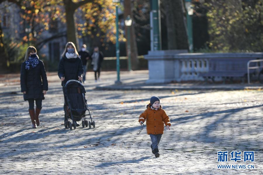 11月18日,在比利时布鲁塞尔,人们在公园散步。