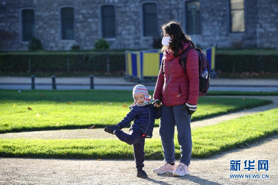 11月18日,在比利时布鲁塞尔,人们在公园休闲。