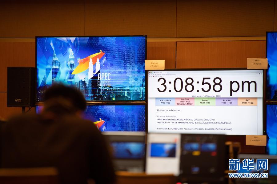 这是11月18日在马来西亚吉隆坡会议中心拍摄的亚太经合组织工商领导人对话会指挥中心。 2020年亚太经合组织(APEC)工商领导人对话会19日以线上形式举行,对话会指挥中心发挥了技术保障的“中枢”作用,确保了线上对话会顺利举行。马来西亚是2020年APEC会议东道主。 新华社记者 朱炜 摄