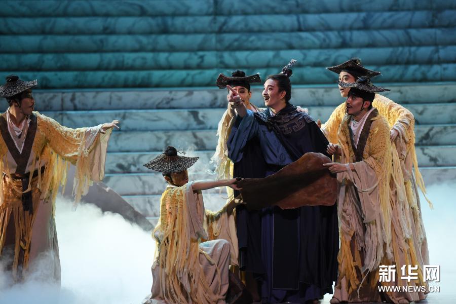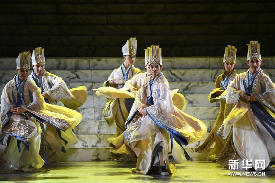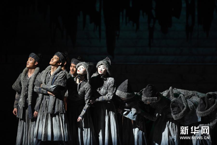 11月17日晚,演员在兰州音乐厅表演舞剧《彩虹之路》。新华社记者 陈斌 摄