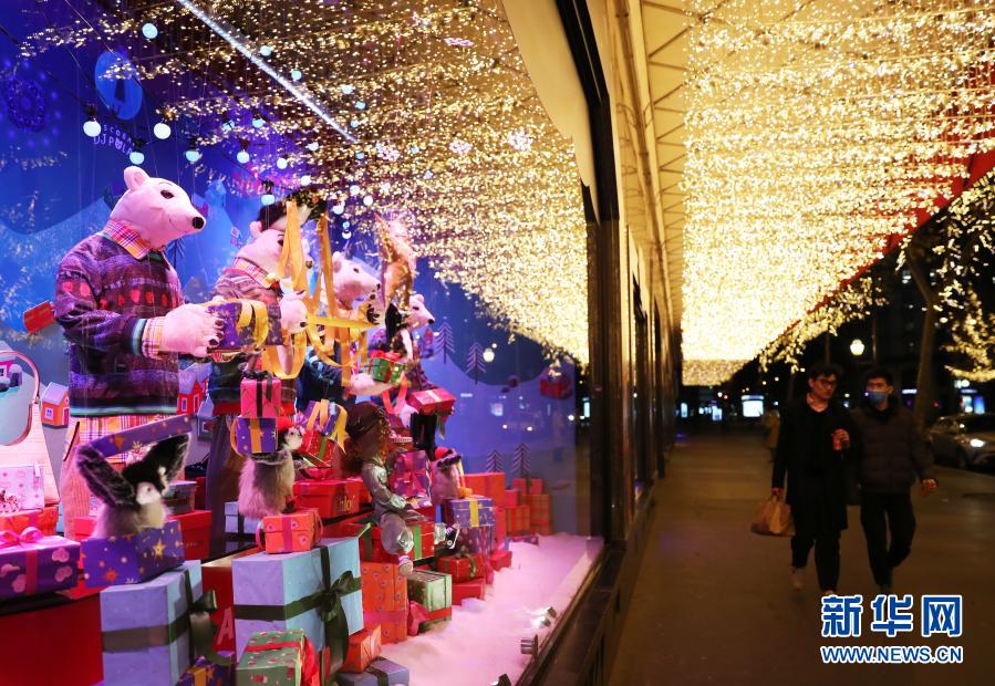 11月22日,人们走过法国巴黎老佛爷百货商店的圣诞橱窗。新华社记者 高静 摄