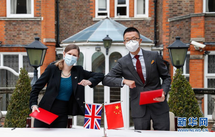 10月16日,在英国伦敦,代表中国国家文物局的中国驻英国大使馆文化处一秘于果(右)和代表英国大都会警察局的探员苏菲·海斯签署文物接收确认书。新华社记者 韩岩 摄