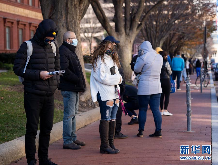 11月23日,人们在美国华盛顿的一处新冠病毒检测点排队等候检测。新华社记者 刘杰 摄