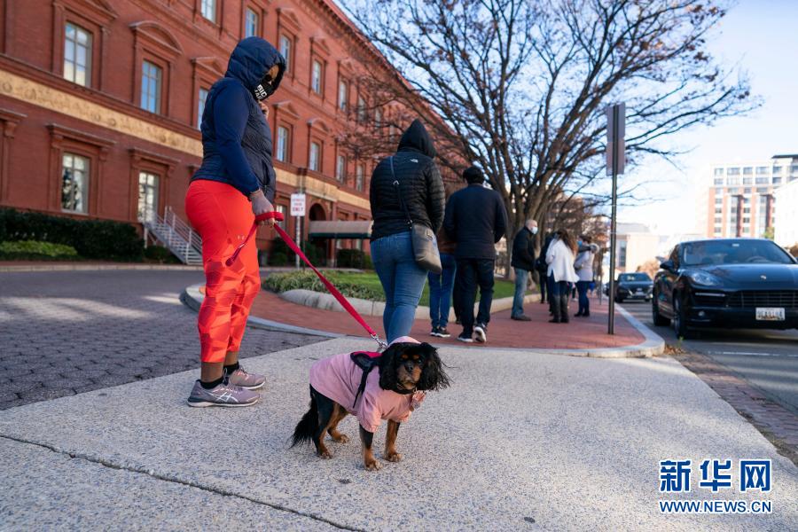 11月23日,人们在美国华盛顿的一处新冠病毒检测点排队等候检测。新华社记者 刘杰 摄