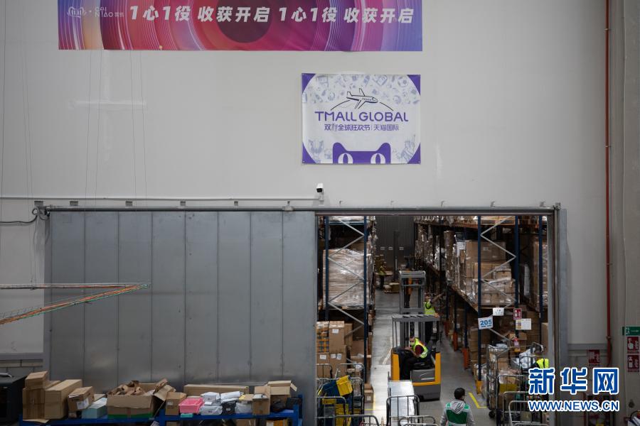 这是11月11日,工作人员在西班牙瓜达拉哈拉市的菜鸟海外仓分拣商品。“双十一”带动西班牙线上消费新热潮。