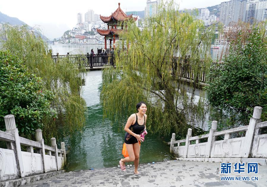 初冬时节,在汉江流经的陕西省安康市紫阳县,许多冬泳爱好者在江中畅游,享受冬泳带来的健康与快乐。