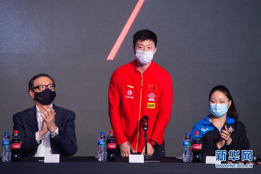当日,WTT中国澳门国际乒乓球赛举行抽签仪式及新闻发布会,世界乒乓球职业大联盟(WTT)理事会主席刘国梁、中国选手马龙、丁宁等出席。