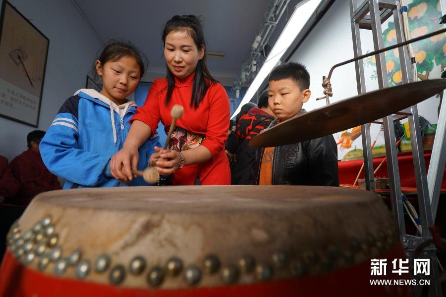 11月24日,皮影戏艺人在河北省沙河市西油村小学指导学生表演皮影戏。当日,在河北省沙河市,当地皮影戏艺人走进沙河市西油村小学,为学生们展演皮影艺术、传授技艺。今年以来,河北省沙河市积极开展“非遗进校园”活动,组织沙河皮影戏、孔明锁、孙氏太极拳等非遗项目进校园活动80多场。新华社记者 范世辉 摄