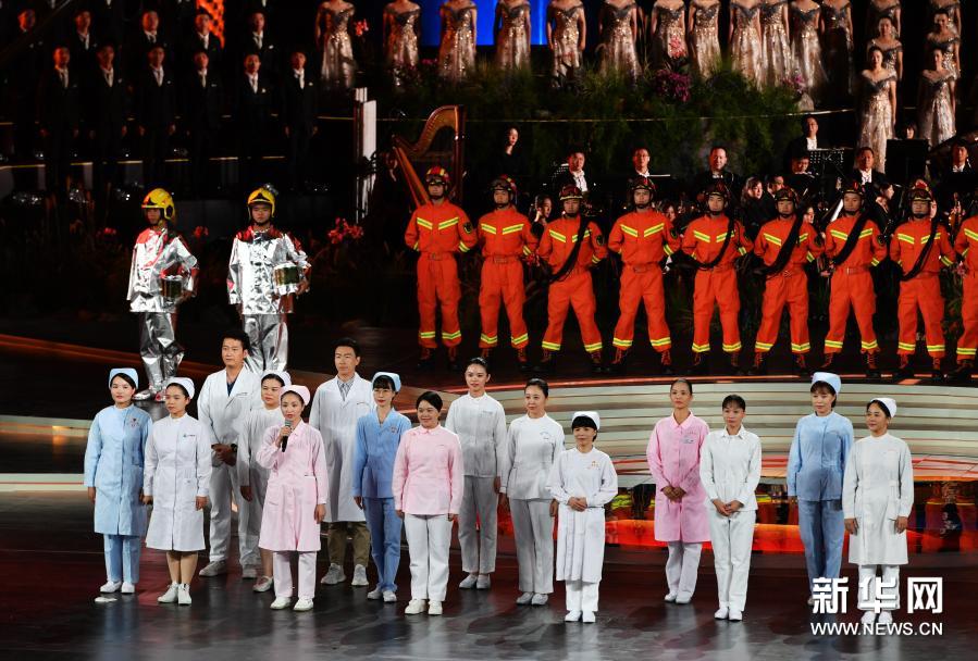 11月25日,在第33届中国电影金鸡奖电影音乐会暨开幕式现场,厦门援鄂医护人员代表和武汉医护人员代表共同表演《我们》。当晚,第33届中国电影金鸡奖电影音乐会暨开幕式在厦门白鹭洲公园举行。新华社记者 魏培全 摄