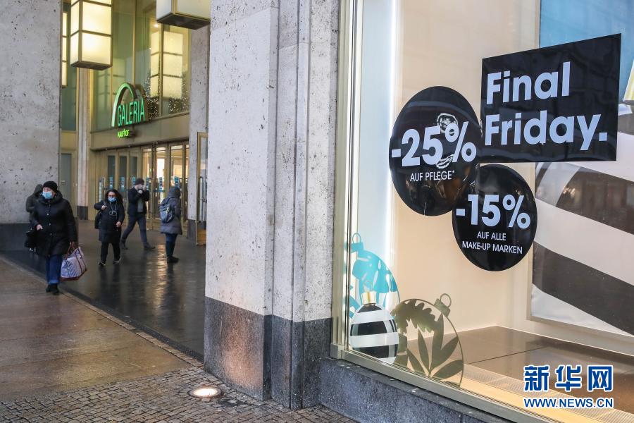 11月26日,在德国首都柏林,人们进出一家购物中心。 德国联邦和各州政府25日晚达成协议,延长从11月初开始实施的新冠防疫限制措施至12月20日,并进一步收紧私人聚会人数限制、戴口罩等相关规定。 新华社记者 单宇琦 摄