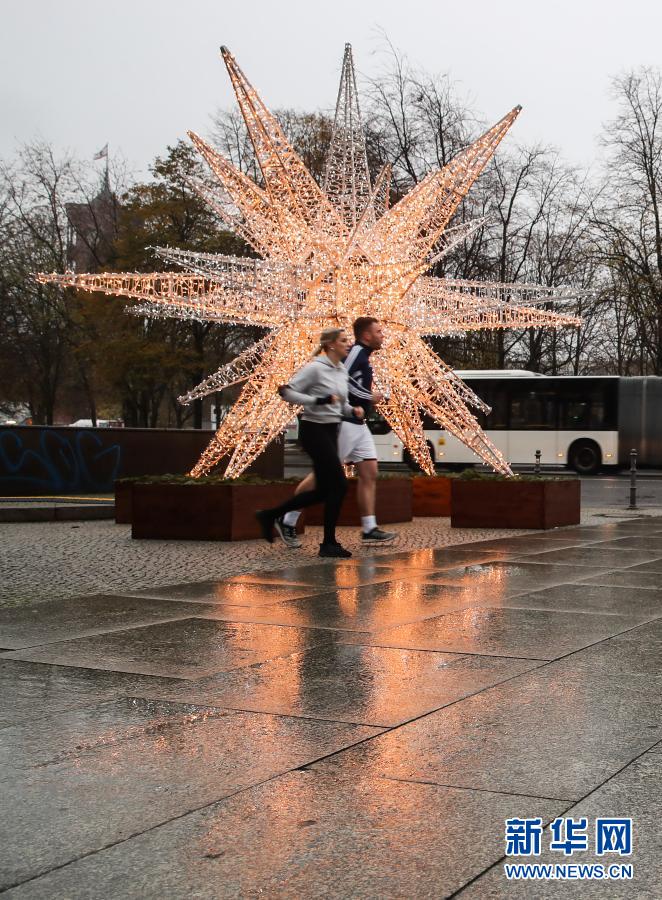 11月26日,在德国首都柏林,两名跑步者经过一处圣诞灯饰。 德国联邦和各州政府25日晚达成协议,延长从11月初开始实施的新冠防疫限制措施至12月20日,并进一步收紧私人聚会人数限制、戴口罩等相关规定。 新华社记者 单宇琦 摄 |
