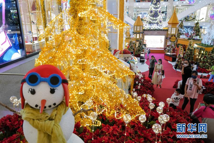 11月26日,在马来西亚吉隆坡,人们在一家商场观看圣诞节装饰。随着圣诞节临近,吉隆坡节日气氛渐浓。新华社记者 朱炜摄