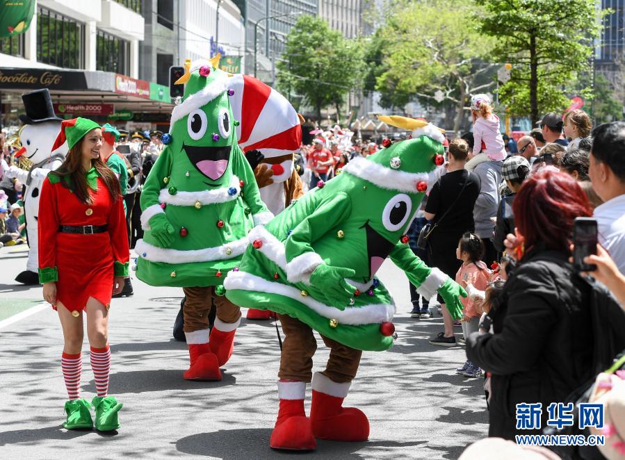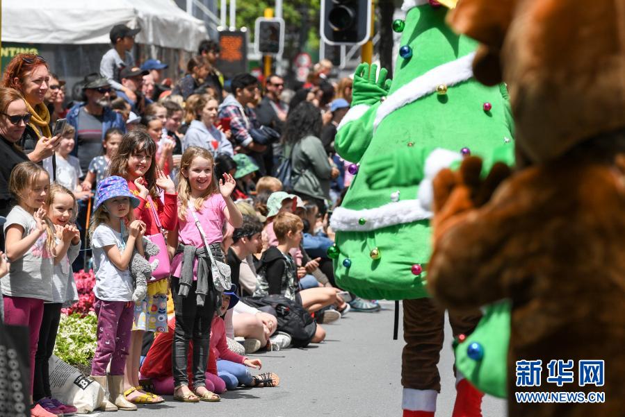 11月28日,人们在新西兰首都惠灵顿市中心参加一年一度的迎圣诞游行活动。新华社记者 郭磊 摄