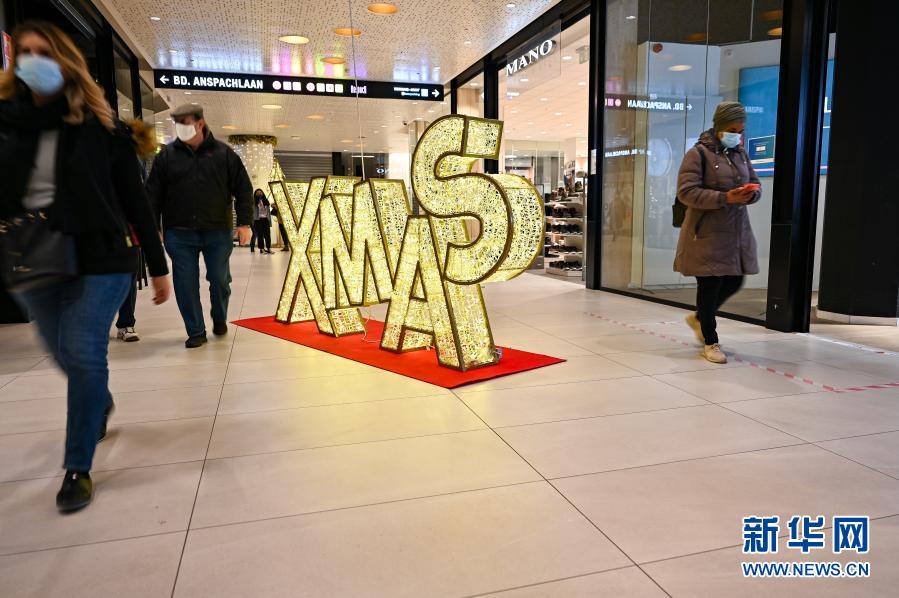 12月1日,在比利时布鲁塞尔,人们走过一家商场内的圣诞装饰。 比利时首相亚历山大·德克罗11月27日宣布调整新冠疫情防控措施,允许“非必需品”商店12月1日起重新开业,但商家和顾客都必须遵循安全规则,包括佩戴口罩、保持社交距离、限制同时在店人数和停留时间等。 新华社记者张铖摄