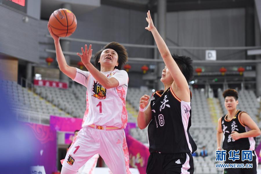 12月1日,山西竹叶青队球员赵志芳(左)在比赛中上篮。