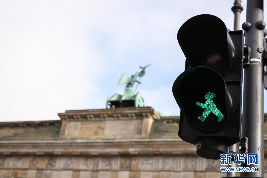 这是11月20日在德国首都柏林勃兰登堡门附近拍摄的行人信号灯。 柏林的人形行人信号灯于1961年由德国交通心理学家卡尔·佩格劳创作,1969年开始投入使用并逐渐普及。其设计的初衷是让对颜色不敏感的群体更好地识别行人交通信号,同时生动的人物形象更容易被人们接受。此外,这种信号灯的发光面积也比一般的行人信号灯更大,因而更加醒目。时至今日,这种“红绿灯小人”已经成为了柏林的一种文化符号。 新华社记者 单宇琦 摄
