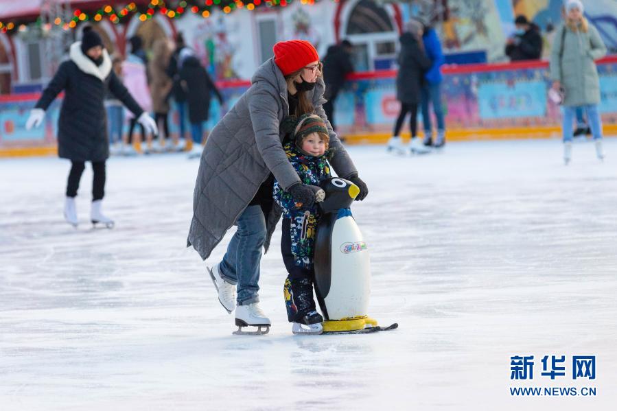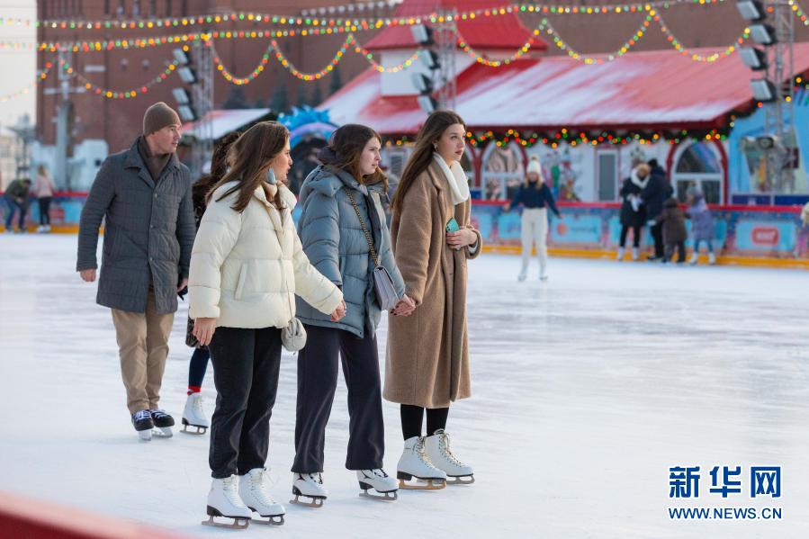 12月2日,人们在俄罗斯莫斯科红场上的古姆百货商场滑冰场滑冰。 位于莫斯科红场上的古姆百货商场滑冰场已于11月29日正式开放,将营业至2021年3月1日。 新华社记者 白雪骐 摄
