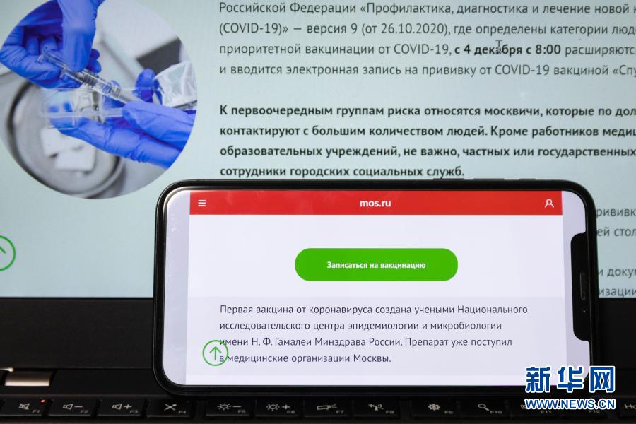 这是12月4日在俄罗斯首都莫斯科拍摄的莫斯科市民新冠疫苗接种电子申请系统页面。新华社记者 白雪骐 摄