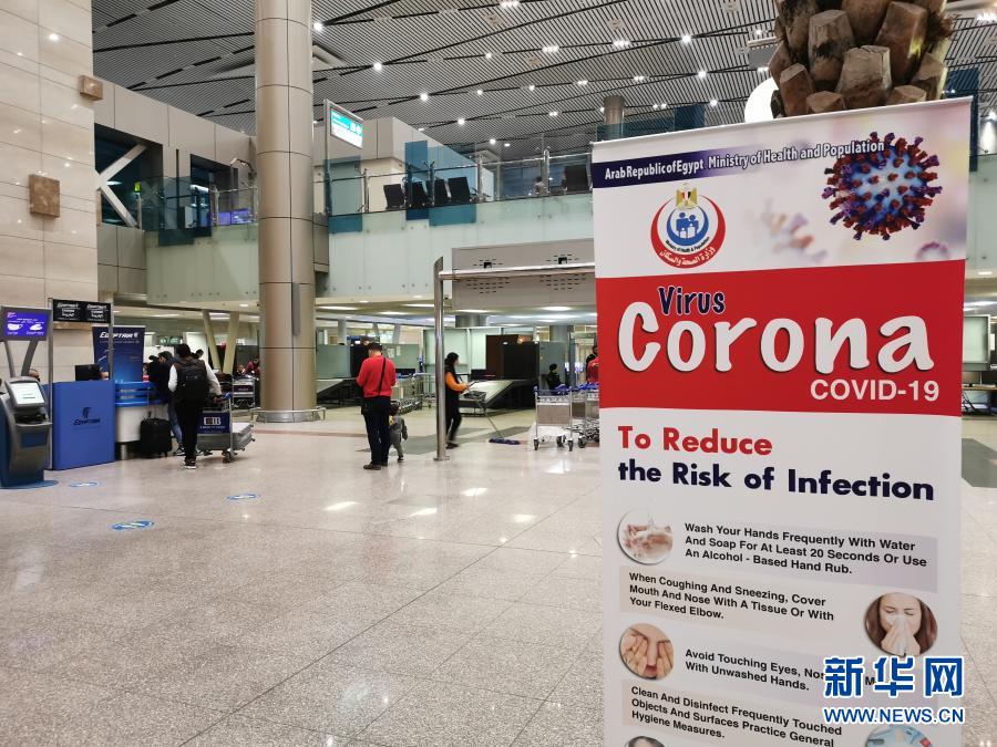 这是12月4日在埃及开罗国际机场拍摄的防疫提示牌。埃及卫生部4日说,该国新增新冠确诊病例427例,累计确诊117583例;累计治愈103191例;累计死亡6732例。