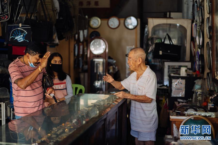 12月5日,在马来西亚雪兰莪州巴生的郁昌表行,韦华与顾客告别。新华社记者 朱炜 摄
