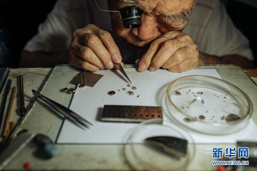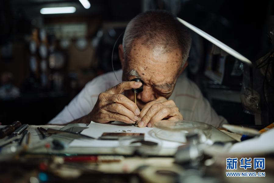 12月5日,在马来西亚雪兰莪州巴生的郁昌表行,韦华在维修手表。 韦华老师傅今年84岁,在马来西亚雪兰莪州巴生的郁昌表行修理钟表。 韦师傅出生于马来西亚彭亨州。他的父母早年间从中国广西辗转来到马来西亚。上世纪50年代中期,出于兴趣,韦师傅开始学习维修钟表,从此便与钟表结伴一生。 郁昌表行并不大,原本是韦师傅与一个朋友共同经营,两人合作共事了40余年。2015年85岁高龄的朋友去世,表行剩下韦师傅一个人在坚守。巴生的钟表行从鼎盛时的六家变成了现在的四家,其余三家都已经陆续传到了第二代、第三代的手里,只有年逾八旬的韦师傅还在坚持着每天亲自营业。 时钟不停转,生命不停息,岁月随着表芯流转飞逝……如今,韦师傅的耳朵虽已不似过往那般灵敏,单靠听声便可分辨出表的问题,但是他说,只要自己还能做,还会坚持工作下去。 新华社记者 朱炜 摄