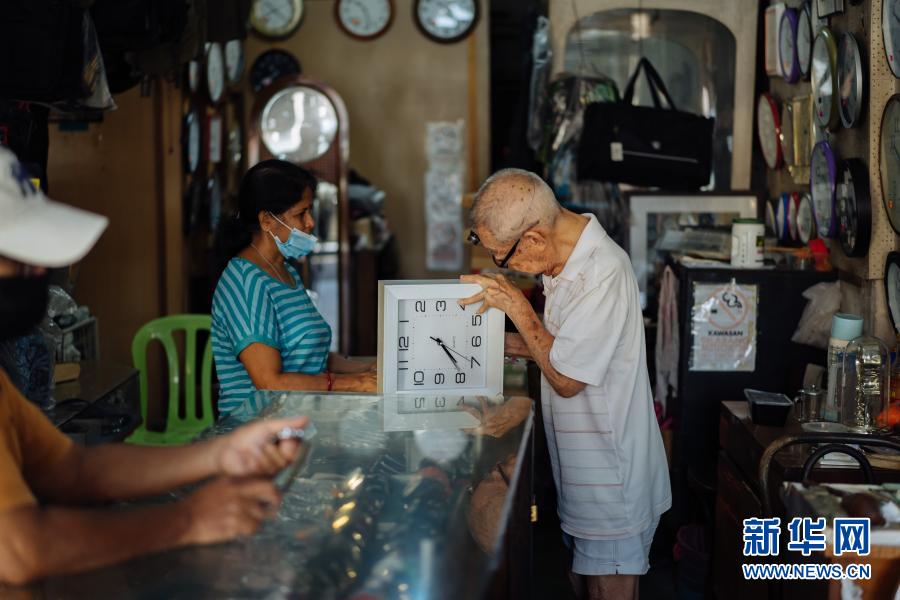 12月5日,在马来西亚雪兰莪州巴生的郁昌表行,韦华查看顾客送来的时钟。新华社记者 朱炜 摄
