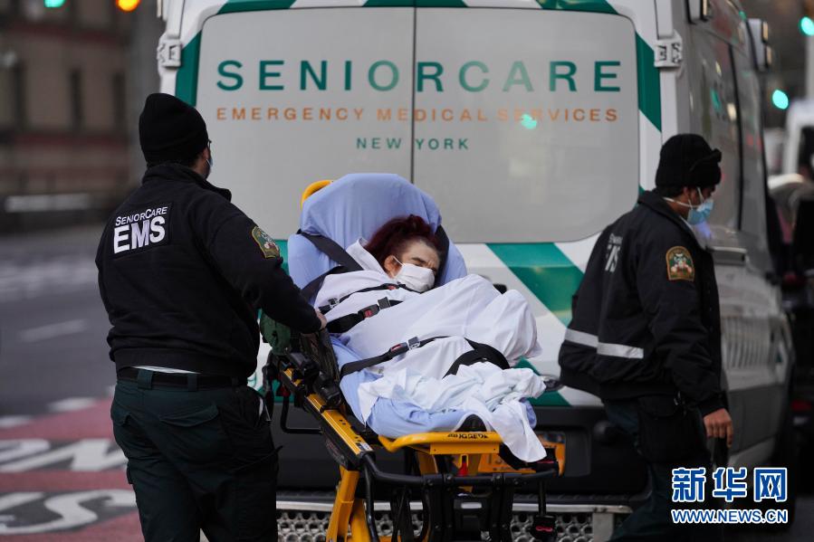 12月8日,医护人员在美国纽约一家医院外运送病人。 美国约翰斯·霍普金斯大学8日发布的新冠疫情最新统计数据显示,美国累计确诊病例超过1500万例。 新华社记者 王迎 摄