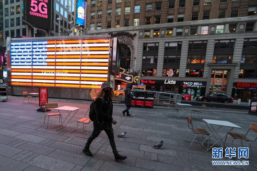 12月8日,在美国纽约,行人走过空荡的时报广场。