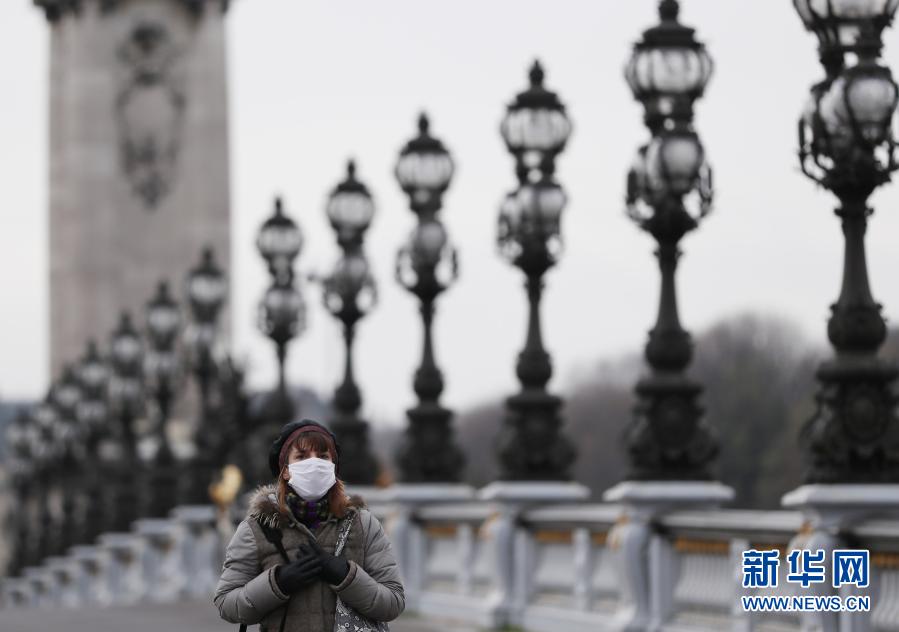 12月9日,一名戴口罩的女子走在法国巴黎亚历山大三世桥上。 法国防疫专家埃里克·科姆7日说,就法国疫情趋势看,可能难以在12月15日实现目标,即单日新增新冠确诊病例降至5000例以下。这是法国政府先前设定的第二阶段“解封”前提。 新华社记者 高静 摄