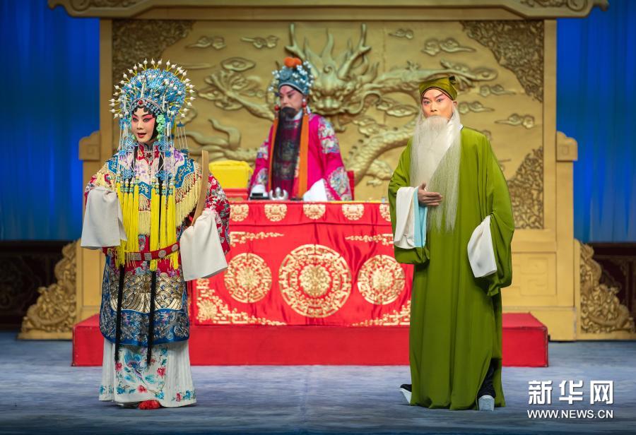 12月13日,京剧表演艺术家李胜素(左)、于魁智(中)在表演京剧《大登殿》。新华社记者 饶饶 摄