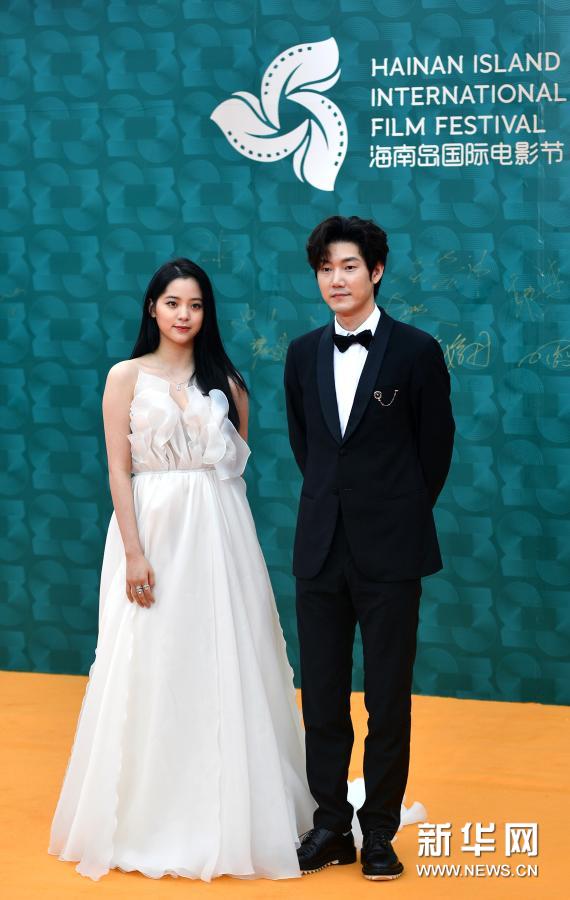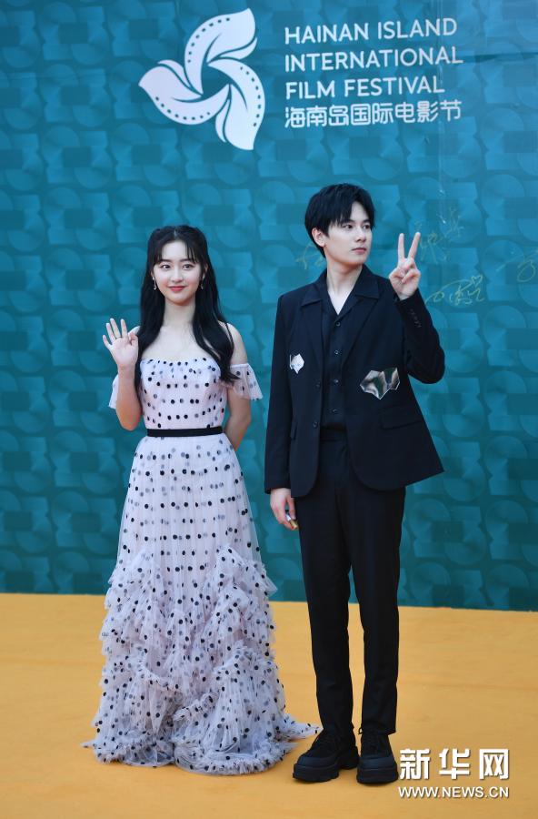 12月12日,演员邓恩熙(左)、胡先煦亮相电影节红毯仪式。新华社记者 郭程 摄