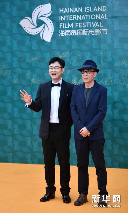 12月12日,演员大鹏(左)、导演曹保平亮相电影节红毯仪式。新华社记者 郭程 摄