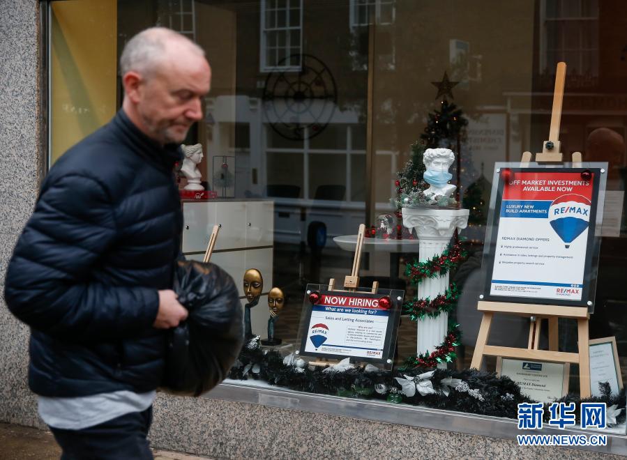 12月13日,一名男子从英国伦敦一家店铺旁走过。 英国政府12月11日宣布,经专家们评估,该国决定将与新冠病毒感染者有密切接触的人自我隔离期从原本的14天缩短至10天。 新华社记者韩岩摄