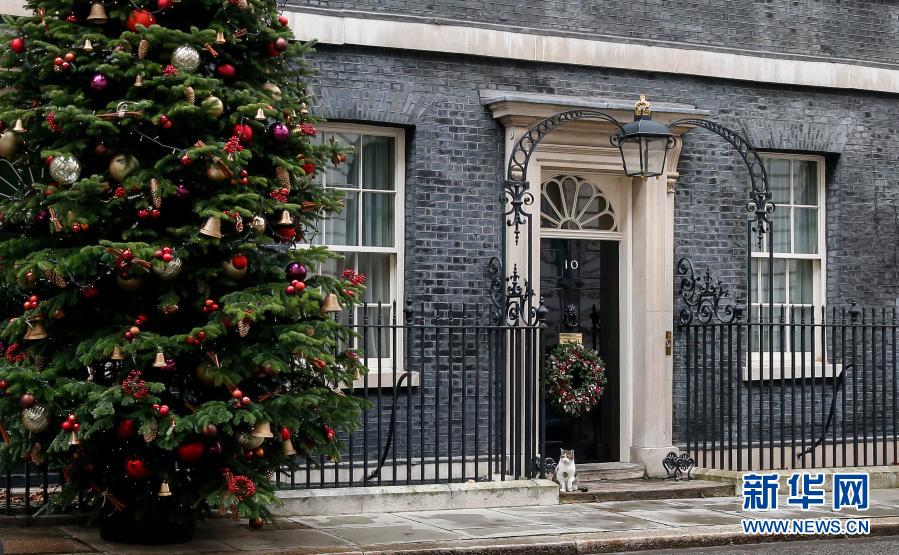 12月9日,在英国伦敦,首相府的“首席捕鼠官”拉里站在唐宁街10号门前。 虎斑猫“拉里”于2011年搬到唐宁街10号,以帮助消灭鼠患。新华社记者韩岩摄
