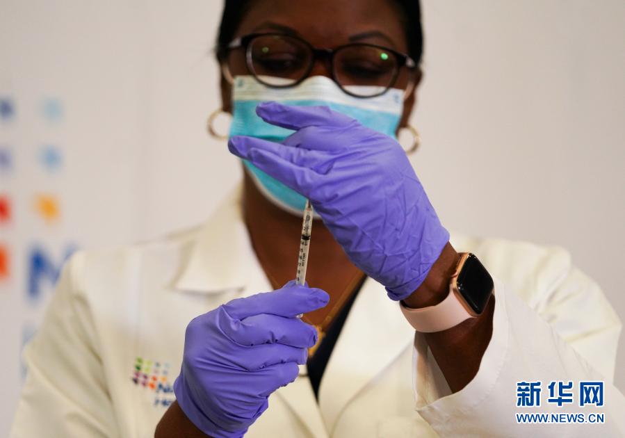 12月14日,在美国纽约长岛犹太医疗中心,一名医护人员为新冠疫苗接种作准备。 美国14日启动新冠疫苗接种,首批接种人群为医护人员和生活在养老院等长期护理机构的群体。当天上午,纽约长岛犹太医疗中心重症监护室护士桑德拉·琳赛最先接种了疫苗,成为纽约州首名疫苗接种者,也是全美首批疫苗接种者之一。 新华社记者王迎摄