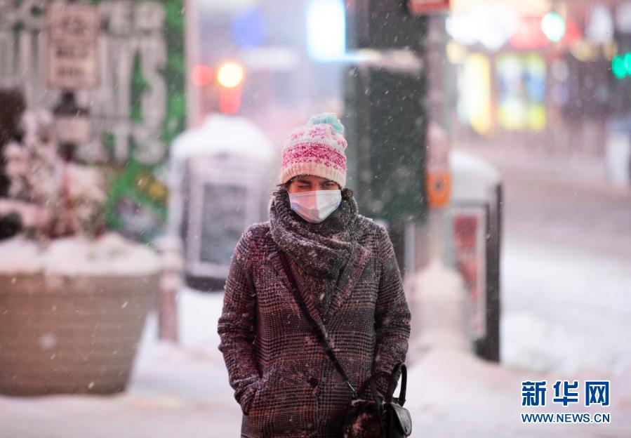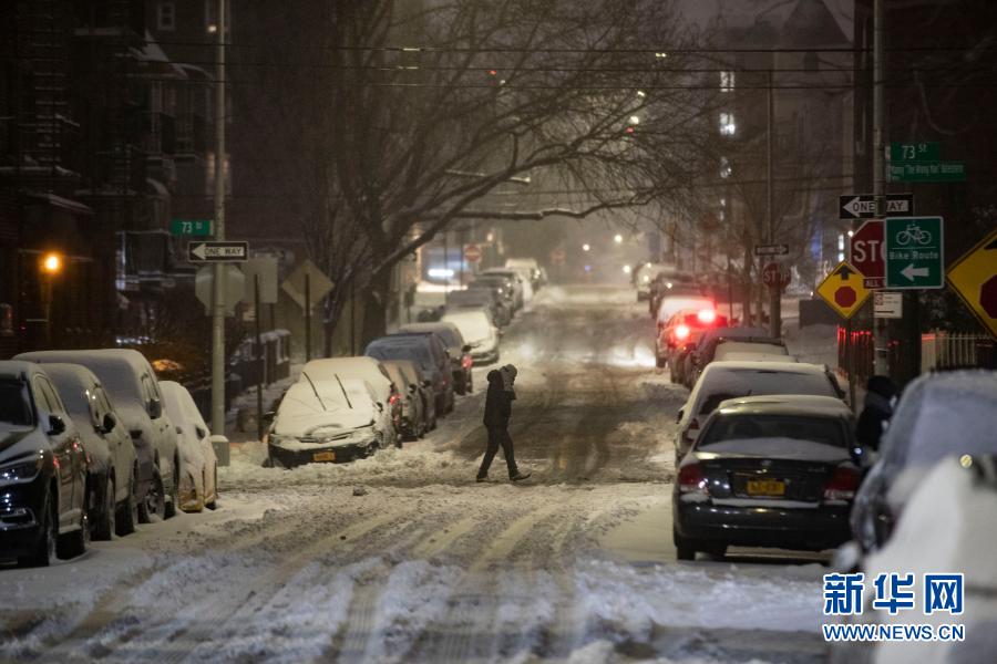 12月16日,在美国纽约,行人走在积雪的道路上。 当天,美国纽约遭遇暴风雪天气。 新华社记者 王迎 摄