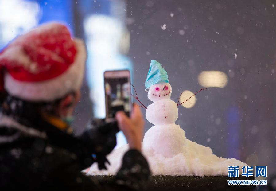 12月16日,在美国纽约时报广场,一名男子拍摄雪人。 当天,美国纽约遭遇暴风雪天气。 新华社记者 王迎 摄 |