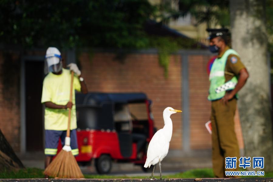 12月19日,在斯里兰卡科伦坡贝拉湖畔,一只鹭鸶从警察和清洁工人前经过。 位于斯里兰卡科伦坡市中心的贝拉湖被称为“城市绿洲”,鹈鹕和鹭鸶是这里的常客,偶尔也有彩鹳等其他鸟类驻留。 新华社记者 唐璐 摄